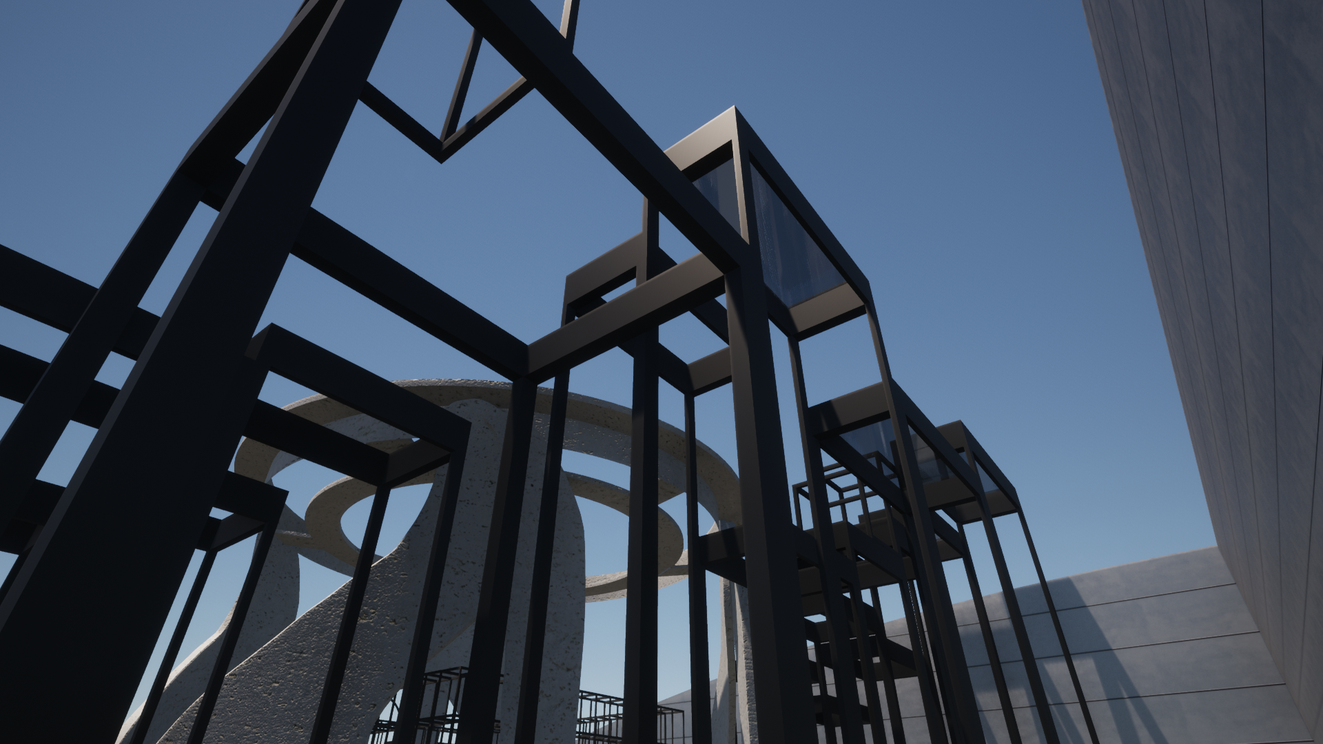 The pavillion was designed to abstract the forms of untouched elements in urban development. The skeletal structures of a building being constructed, the wear and tear of potholed streets, the bare functionality of streetlights.